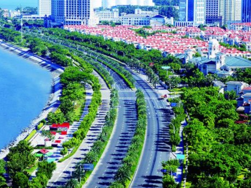 厦门重点打造的自行车锻炼道路;风景跟环岛路有异曲同工之妙;厦门承办国际自行车比赛场地。 海沧大道是完全建立在滩涂上的一条滨海大道,是目前海沧投资规模最大、档次最高的市政道路项目。在海沧大道骑车,海沧大桥、鼓浪屿、西海域等景观尽收眼底,加上漂亮的花岗岩人行道、造型别致的卤化灯,特别是投入1400多万元打造的绿化带,让人赞叹,1300多棵珍贵的中东海藻一路排开,成为目前国内惟一一条如此长距离的中东海藻大道。 海沧大道全长9公里,从嵩屿码头到拥军路的海边,道路十分宽阔平坦,几乎没上坡,全程海景优美,跟环岛路有的一拼,如果你一个人静静的骑骑车,听听歌,吹吹海风,海沧大道绝对在厦门是独一无二的选择。海沧政府也对海沧大道的越来越重视,最近也实施了租自行车项目,相信这边也会越来越热闹,骑车的朋友也会越来越多。