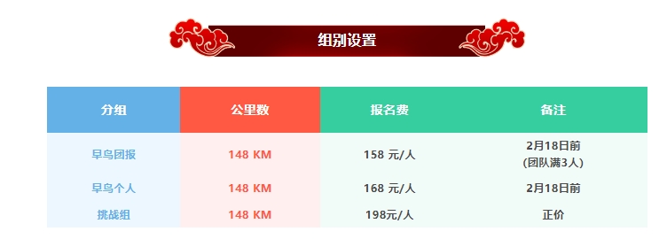 早鸟团报说明:报名信息提交需填写团队名称,不满3人需补早鸟个人差价