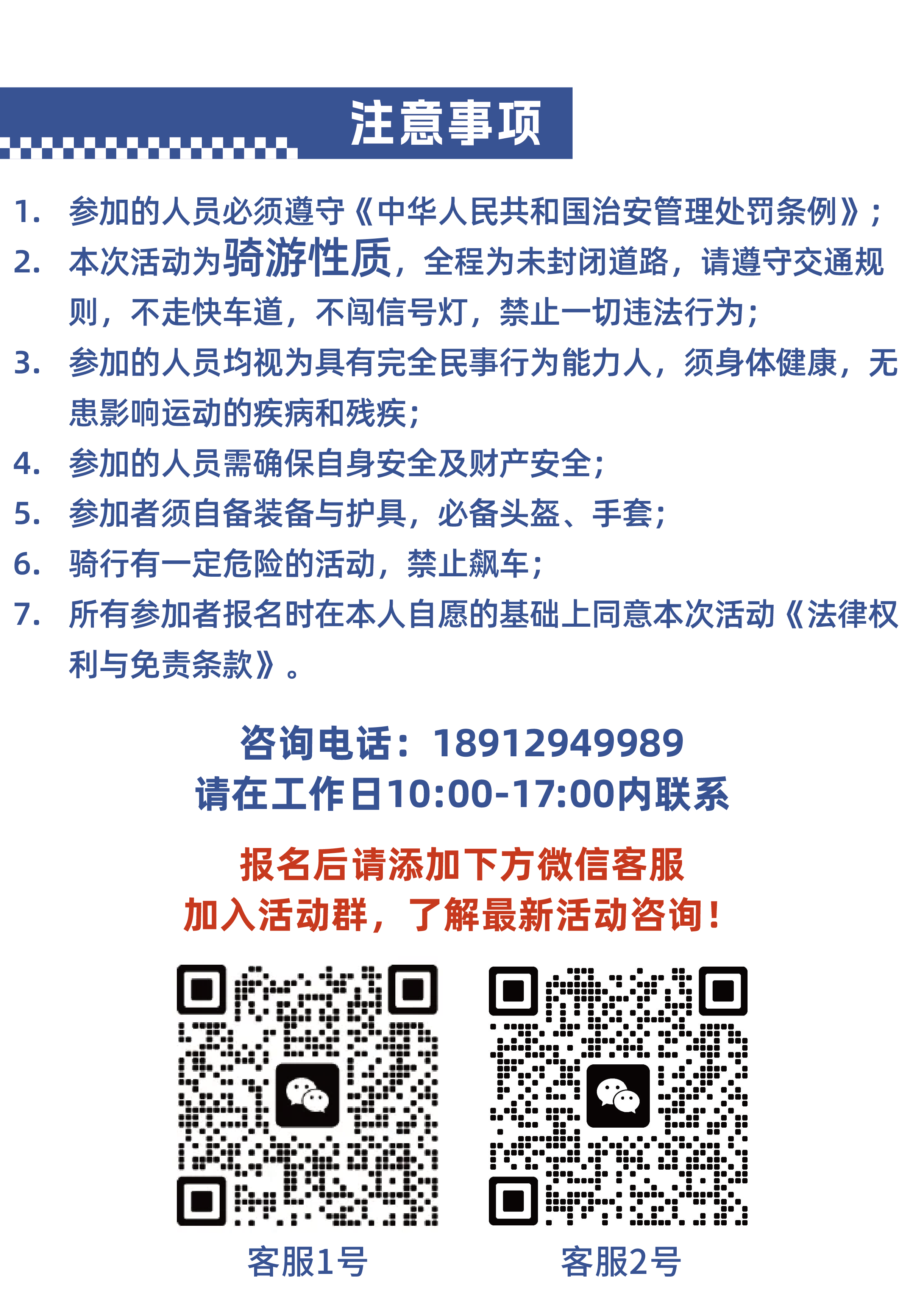 1、承认本人(我们)完全明白本人参加自行车活动存在的受伤或死亡的风险(包括经济损失及其相关损失的风险),前述风险既可能因本人自己的行为、不行为或疏忽、或身体或车辆因素而造成,也可能因他人的行为、不行为或疏忽、或身体或车辆因素而造成,或者因对有关器材、设施、道路或场区的状况条件不熟悉以及这类活动的规则造成。 2、承担本人人身伤害(包括一切医疗费用或住院费用)、永久丧失能力或部分丧失能力、死亡及本人财产损坏和损失方面、本人参加自行车活动所导致的或由于前述参与活动而产生的任何和所有风险。 3、承诺不会就人身伤害、财产损失或死亡,及因本人原因造成第三方人身伤害、财产损失或死亡向自行车活动所有和任何主办单位、承办单位、协办单位、赞助商、推广单位和自行车活动场地方等单位提起关于因本人参加自行车活动而导致的损害赔偿的诉讼或提出有关索赔。 4、承诺对于因本人参加自行车活动而造成的或源自其参加自行车活动的任何责任、损失、损害、索赔、要求或其他诉因(不论是因后述各方的疏忽还是其他原因而造成的),放弃、免除、解除、撤消自行车活动所有和任何赞助商、推广单位、主办单位、协办单位、承办单位和自行车活动场地单位及各单位职员、雇员和代理人的所有责任。 5、同意凡是与本人参加自行车活动有关的本人的所有照片、图片、影片、录像片和影音片永远归自行车活动主办单位、推广单位/公司所有,并同意这些单位/公司使用、授权使用前述照片、图片、影片、录像片和影音片等资料。 6、承诺永远授权自行车活动主办单位、推广单位、赞助单位及其继承与受让单位/公司使用本人于自行车活动的姓名、个人信息、肖像、声音和外貌,其使用包括并不限于任何市场活动、商业用途、任何媒体、任何成品及其相关广告品。 7、本人保证有权作出上述法律责任免除与权利放弃声明,并且不因此项弃权而损及第三者利益。