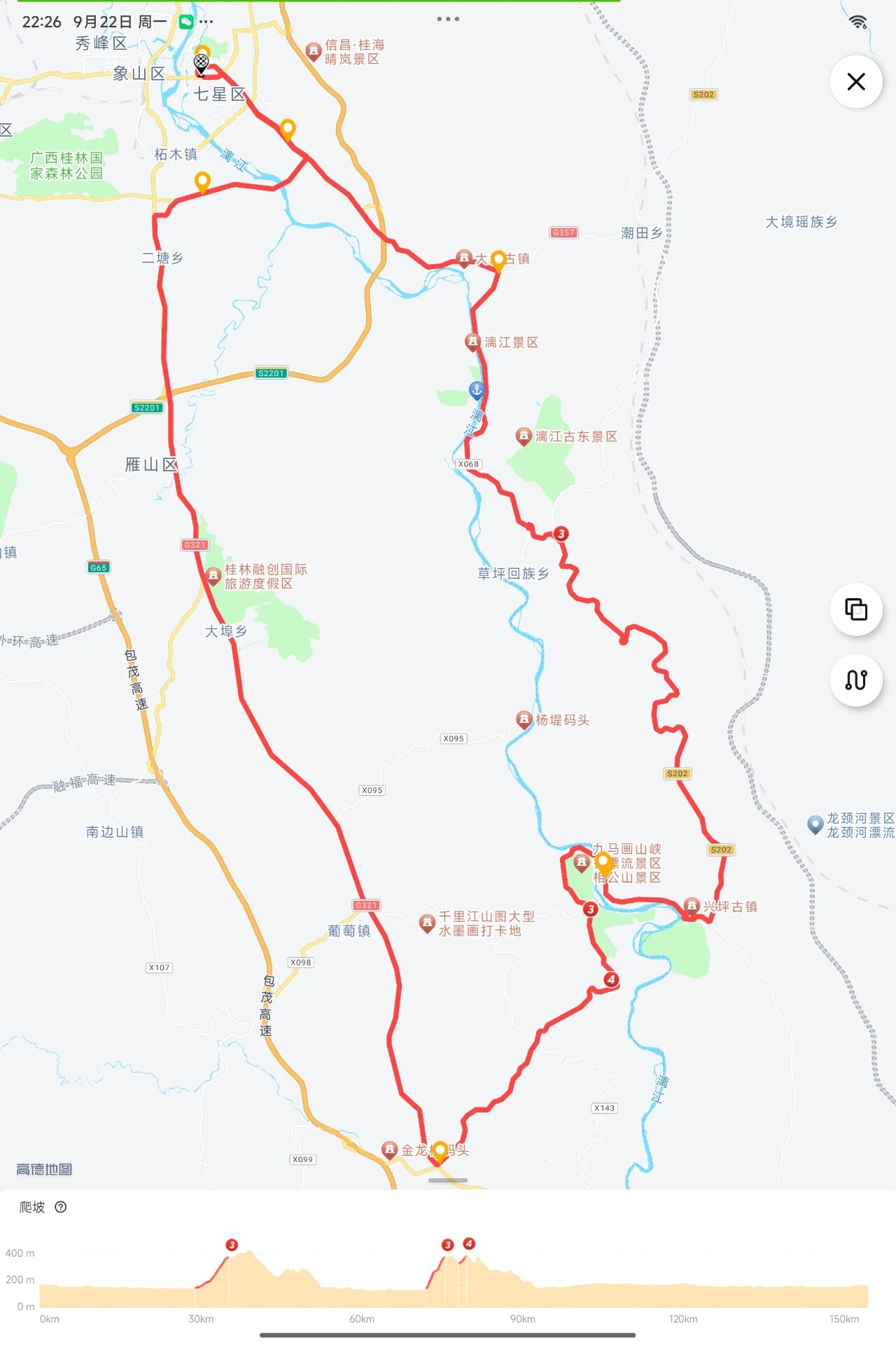 里程:150.0km ; 爬升:1018m