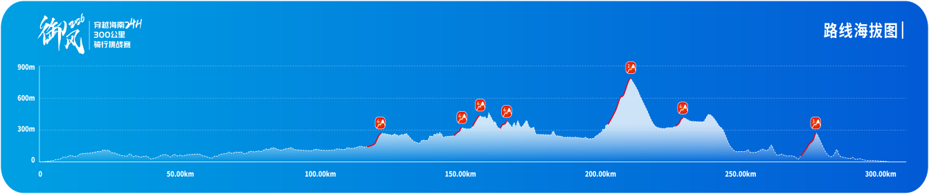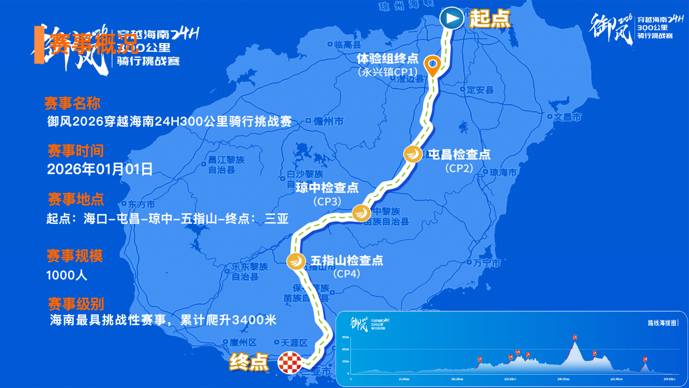 极限全程组:海口-三亚全程300公里;参与人数300人