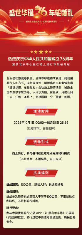 耀骑北京金秋线上100骑行挑战活动