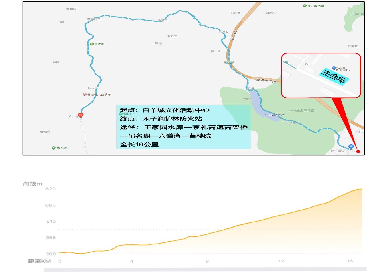 比赛路线为16公里,原小木屋—王家园水库—京礼高速高架桥—六道湾—黄楼院—禾子涧,海拔爬升620米4、限报人数