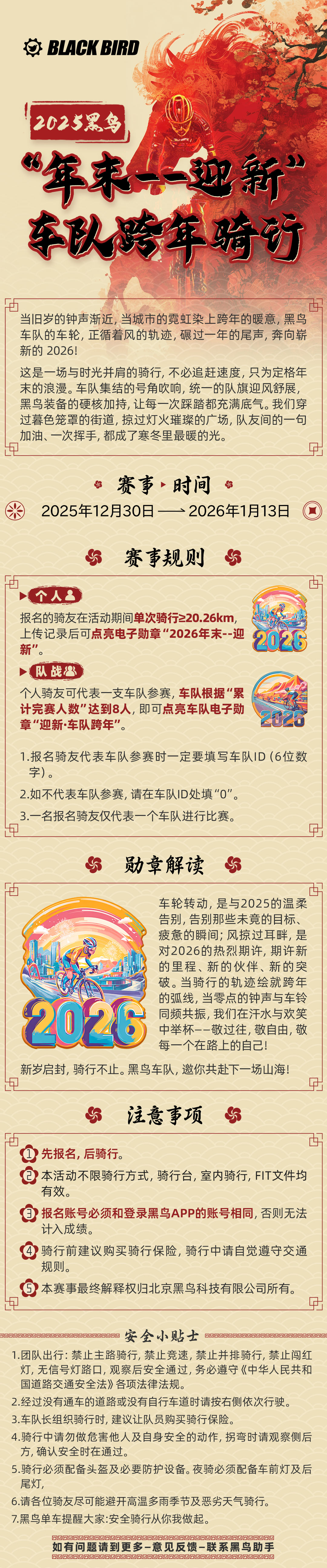 1、本次活动为非营利自助户外活动; 2、领队是指本次活动的总领队、分领队和总收队,发起人是指本活动的发布人; 3、户外运动有一定的危险性和不可预知性,参加者对自己的行为及后果负完全责任; 4、领队和发起人不对任何由户外运动本身具有的风险以及往返路途中发生的危险所产生的后果承担法律上和道德上的责任; 5、骑行活动中所有队员要听从领队和发起人的指挥,发生争议现象,由领队和发起人集体商议解决; 6、对于不服从安排、不同意劝退的人员,领队和活动发起人不承担任何责任; 【未成年人附加免责声明】 1、18周岁以下的未成年人,必须由监护人陪同,或具有由监护人签字的书面免责声明,否则不能参加活动; 2、对于参加活动但又存在隐瞒真实年龄、提供虚假监护人或者伪造监护人签字等欺骗行为的未成年人,领队和发起人不承担任何法律上和道德上的责任; 3、原则上未成年人不能发布活动,不能成为总领队、分领队以及总收队; 4、请车友谨慎参加由未成年人发起的活动,并请自己承担风险;