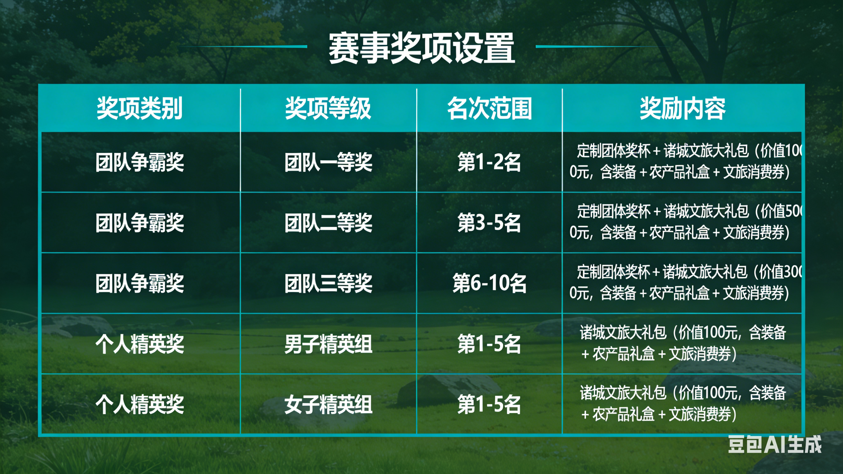 •优秀组织奖(3个):组织参赛人数≥20人、团队纪律严明、文明参赛的骑行团体/单位,颁发荣誉牌匾+队长专属文旅礼包;