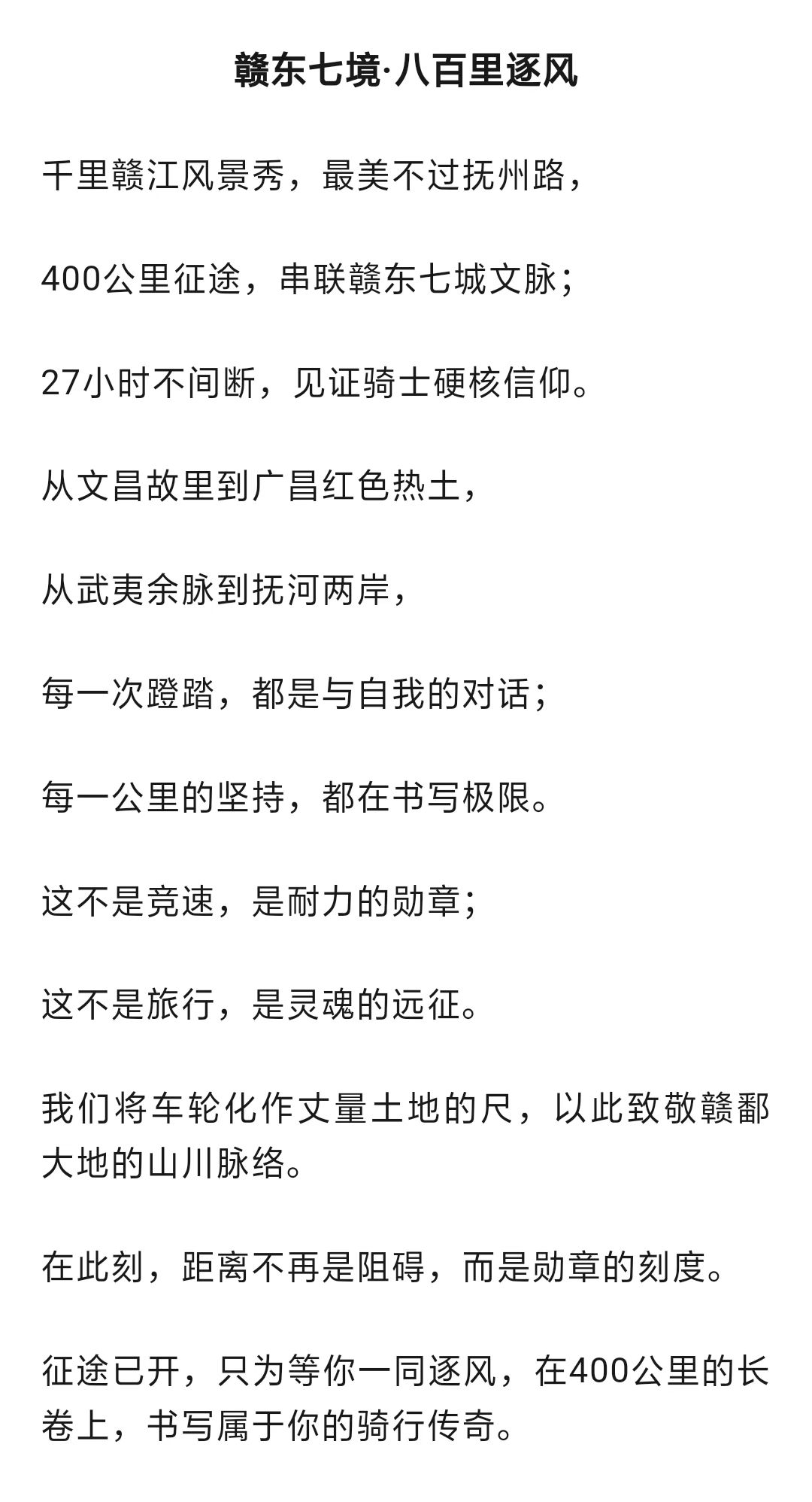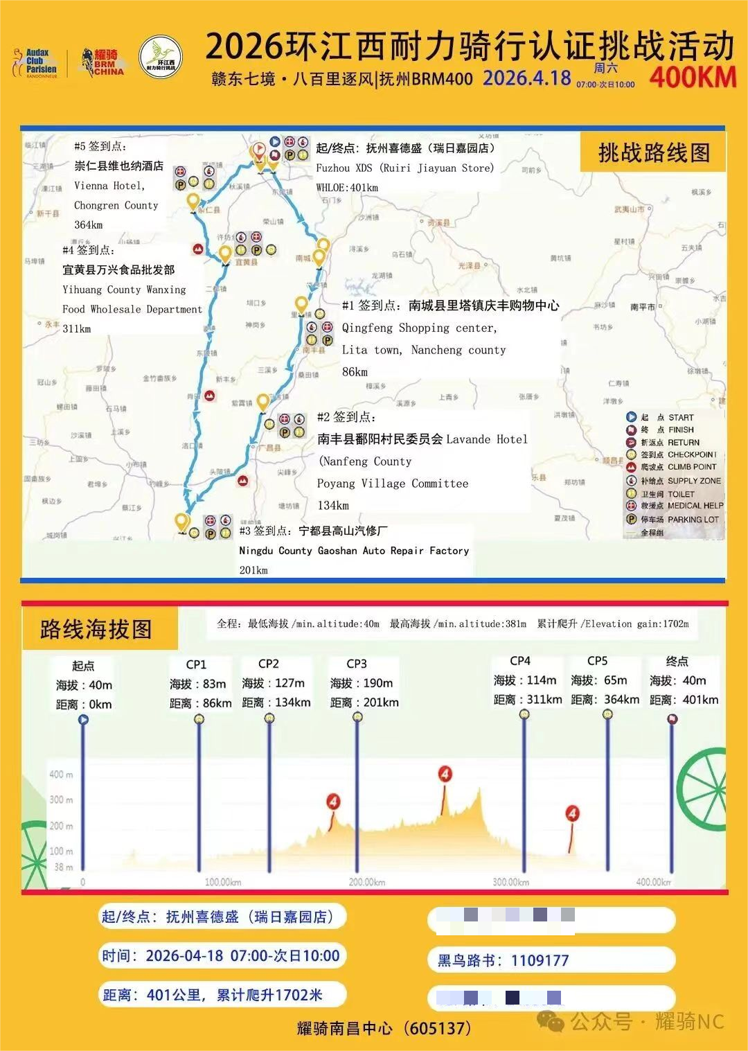 免责声明: 报名参加本活动即表示同意以下观点:本次活动是由耀骑南昌中心发起,车友自愿参加的公开道路非竞速性骑行活动,骑行过程中车手须严格遵守交通规则。参加活动的人员应保证自身身体健康,长期参加体育锻炼,车辆性能完好,戴好头盔,确保自身安全。参加活动的人员须知晓活动过程中可能出现的意外(包括但不限于意外摔车,交通事故,疾病,车辆损坏等)并自负责任。所有参加活动选手在报名时即视为同意签署免责声明。